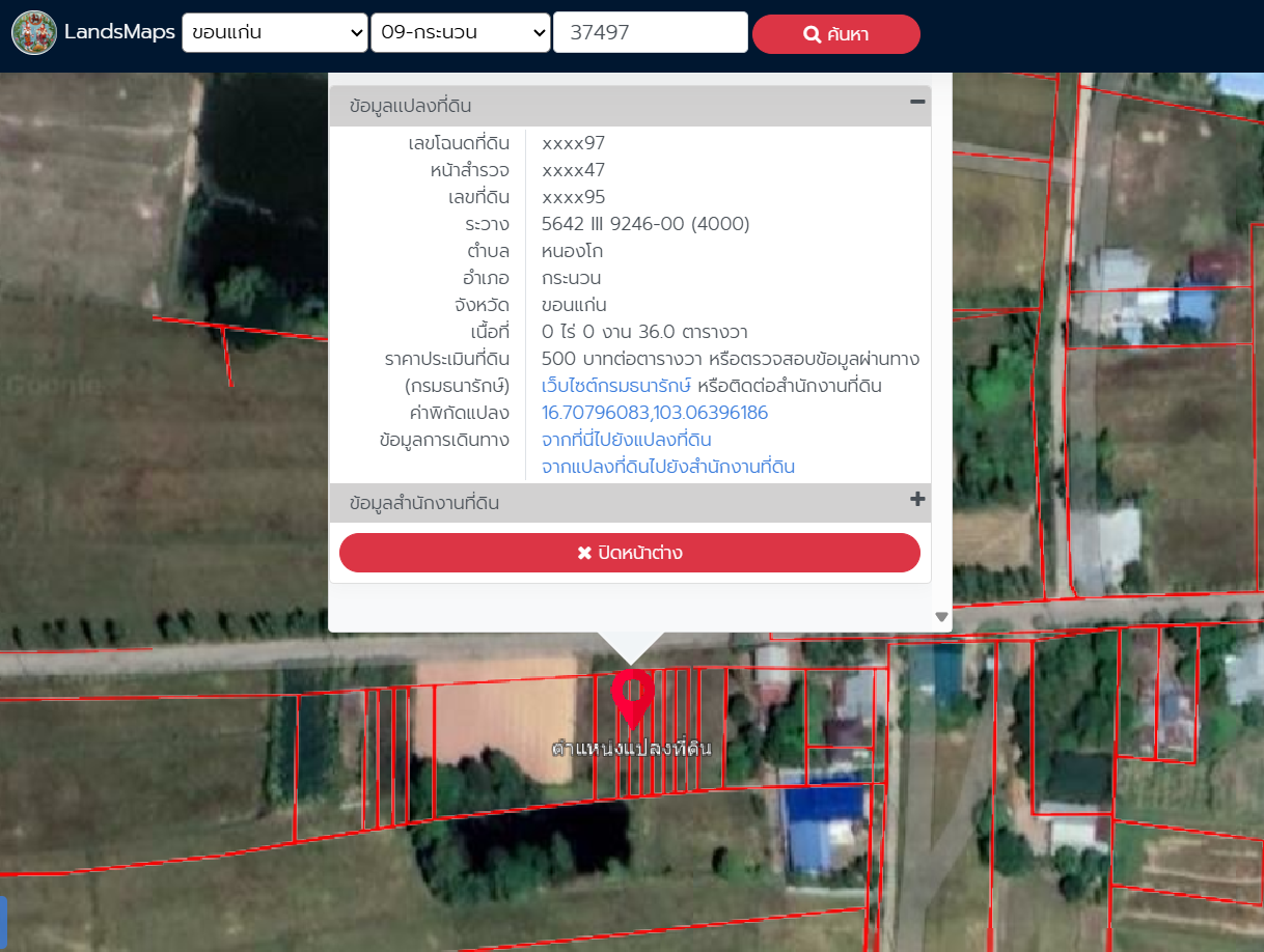 ขายที่ดินเปล่า 36 ตารางวา เลขที่โฉนด 37497 ดูแปลงที่นี