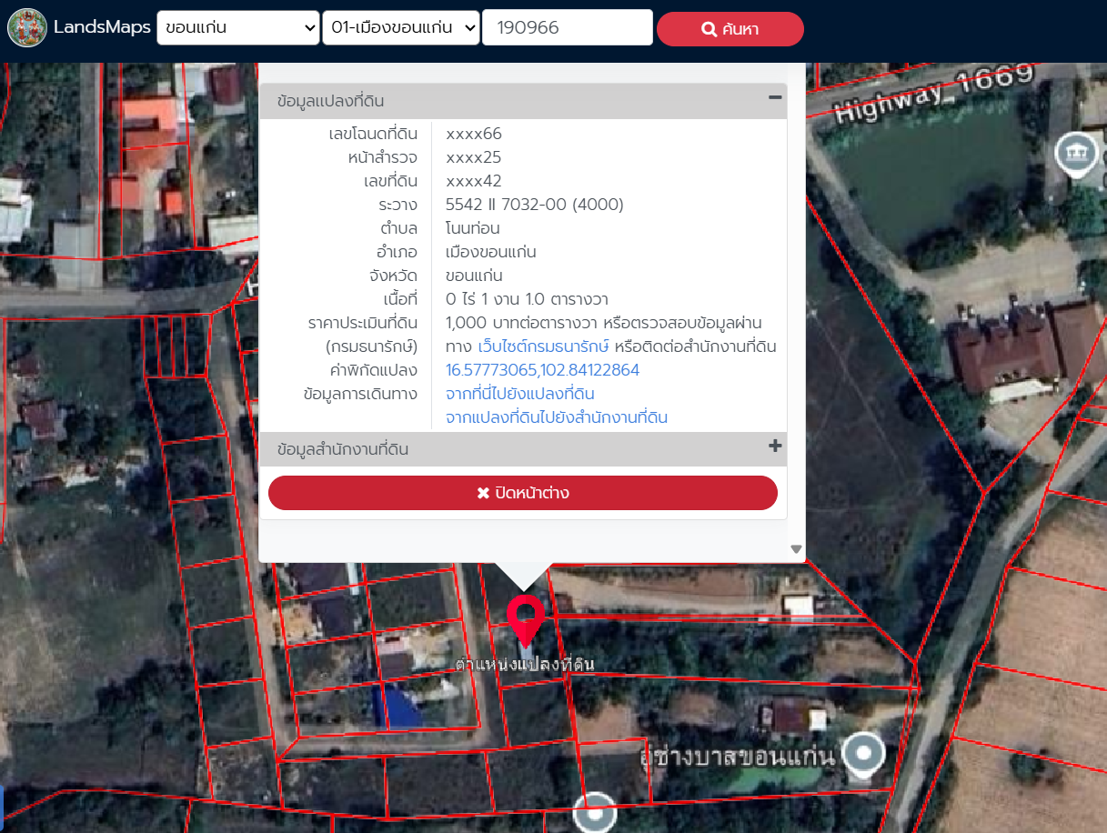 ที่ดินเปล่า 1 งาน 1.0 ตารางวา เลขที่โฉนด 190966 ดูแปลงที่นี่