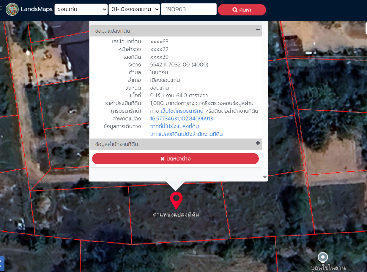 ที่ดินเปล่า 1 งาน 64.0 ตารางวา เลขที่โฉนด 190963 ดูแปลงที่นี่