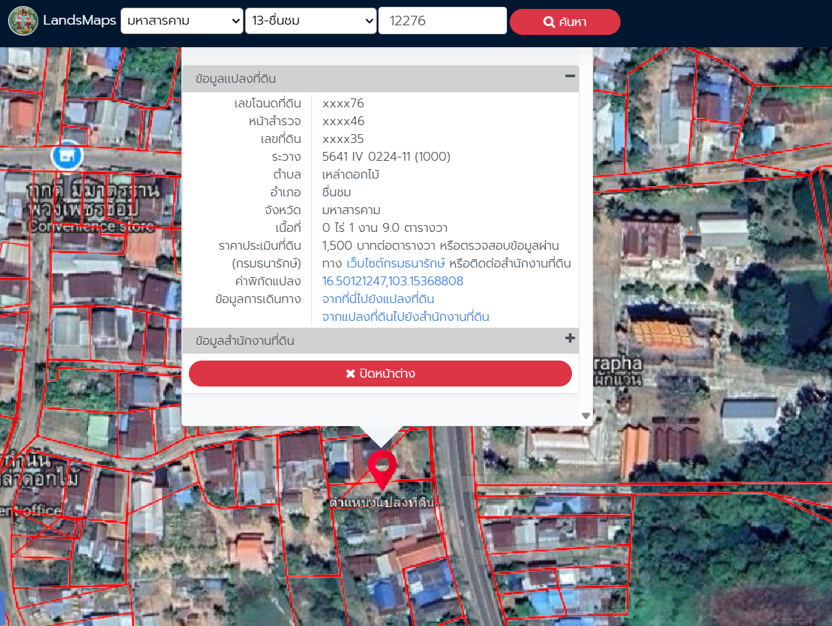 ที่ดินเปล่า 1 งาน 9.0 ตารางวา   เลขที่โฉนด    12276   ดูแปลงที่นี่